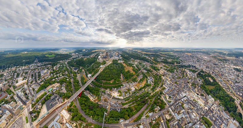 Люксембург, Люксембург. Панорама города. Летний день, облачная погода. Вид с воздуха