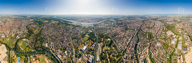 Страсбург, Франция. Панорама города в летний день. Солнечная погода. Панорама 360. Вид с воздуха