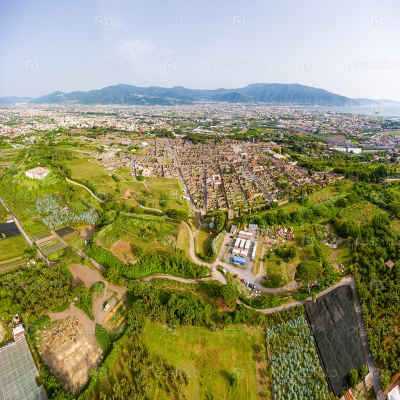 Помпеи, Неаполь, Италия. Руины древнего города. Летом, днем. Вид с воздуха