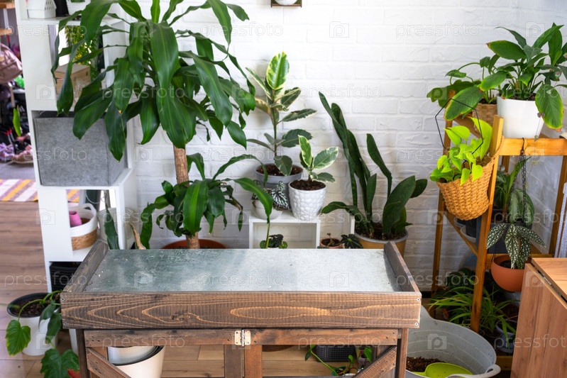 Цветочный стол для ухода и трансплантации горшечных растений, домашнее хобби для выращивания и продажи растений в интерьере зеленого дома