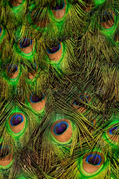 Красивая текстура павлиньих перьев крупным планом. Абстрактный красочный фон птичьего хвоста