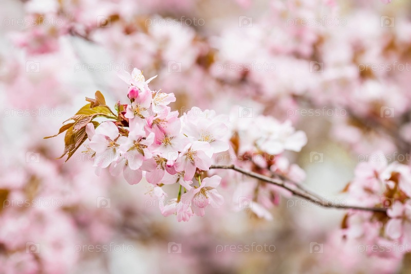 Знамя. Цветет вишня. Весна, обои природы. Цветет вишня в саду. Цветущие розовые бутоны на ветвях дерева в японском саду в дендрарий. Макрофотография. Россия, Царицыно