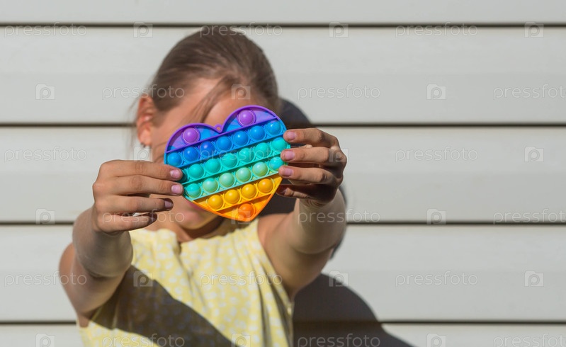 Ребенок с красочной игрой «Поп». Антистресс. Закрытие детских рук популярной поп-музыкой Это игрушка. Аутизм