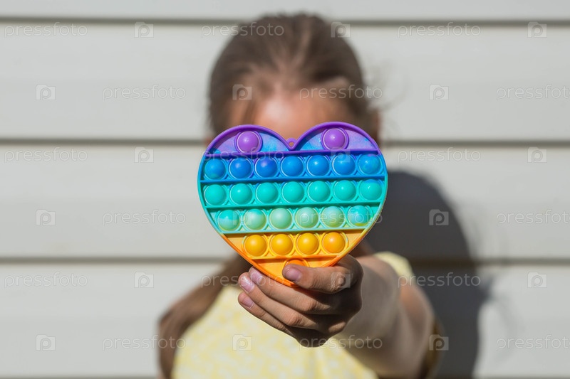 Ребенок с красочной игрой «Поп». Антистресс. Закрытие детских рук популярной поп-музыкой Это игрушка. Аутизм