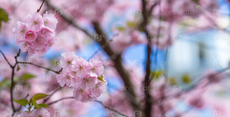 Знамя. Цветет вишня. Весна, природные фотообои. Цветет вишня в саду. Цветущие розовые почки на ветвях дерева. Макрофотография