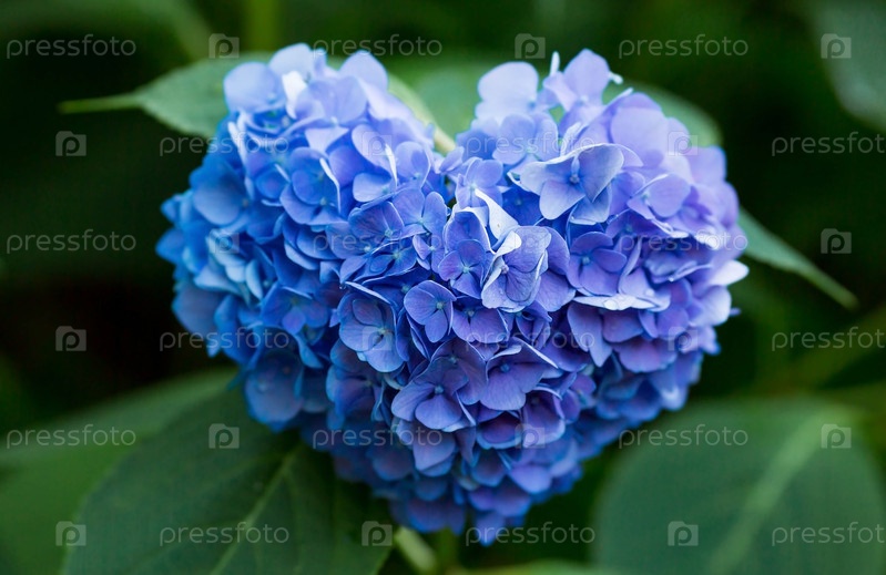 Летняя фотография или фон с голубыми цветами. Закрытие соцветий. Красивые яркие гортензии. Сердцевидный бутон. Понятие любви