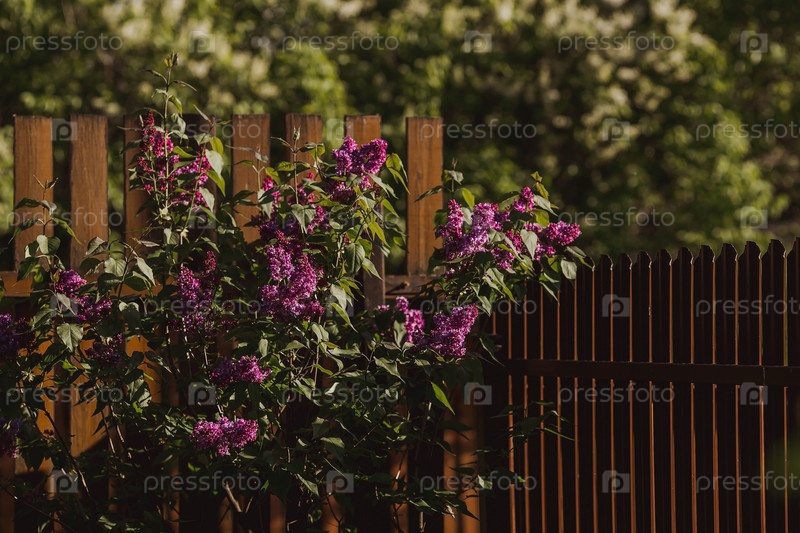 Знамя. Нежный фиолетовый сиреневый цветет в парке. Цветы на закате. Свет от солнца. Близко. Красивый боке на заднем плане