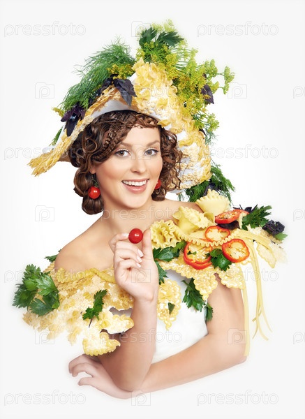 Портрет поварихи в платье из продуктов питания