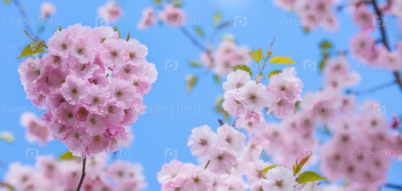 Знамя. Цветет вишня. Весна, природные фотообои. Цветет вишня в саду. Цветущие розовые почки на ветвях дерева. Макрофотография
