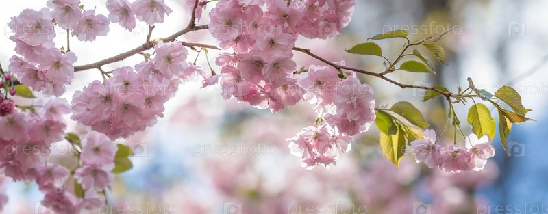 Знамя. Цветет вишня. Весна, природные фотообои. Цветет вишня в саду. Цветущие розовые почки на ветвях дерева. Макрофотография