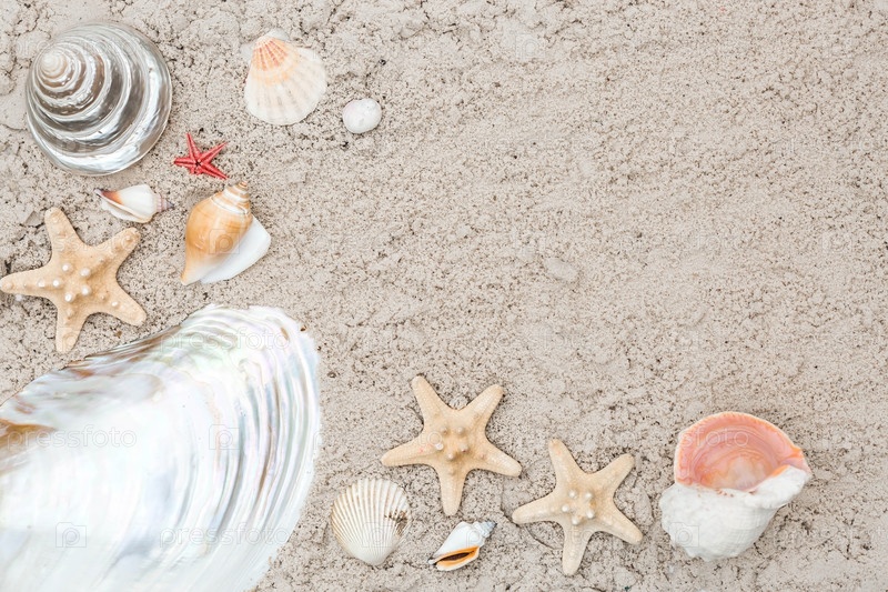 Концепция отдыха на море. Снаряды, соломенная шляпа, солнцезащитные очки на песке. Предыстория летних каникул с пространством для текста. Вид сверху