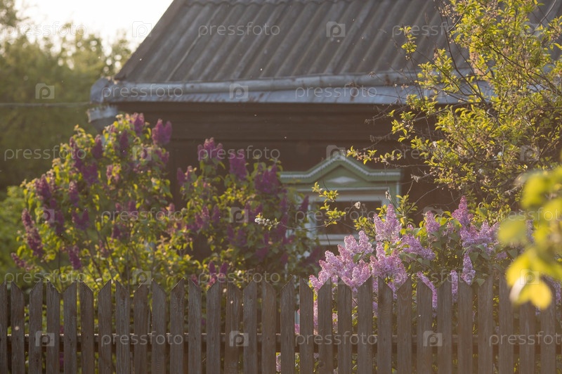 Знамя. Нежный фиолетовый сиреневый цветет в парке. Цветы на закате. Свет от солнца. Близко. Красивый боке на заднем плане