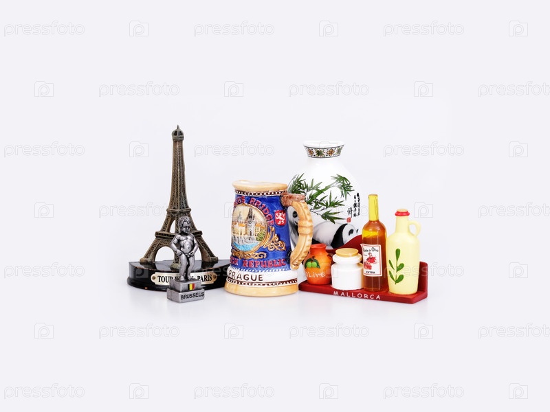 Туристические сувенирные магниты из разных стран изолированы на белом фоне