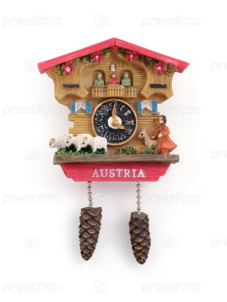 Сувенир австрийских Альп с изображением часов кукушки. Элемент дизайна с обрезкой пути