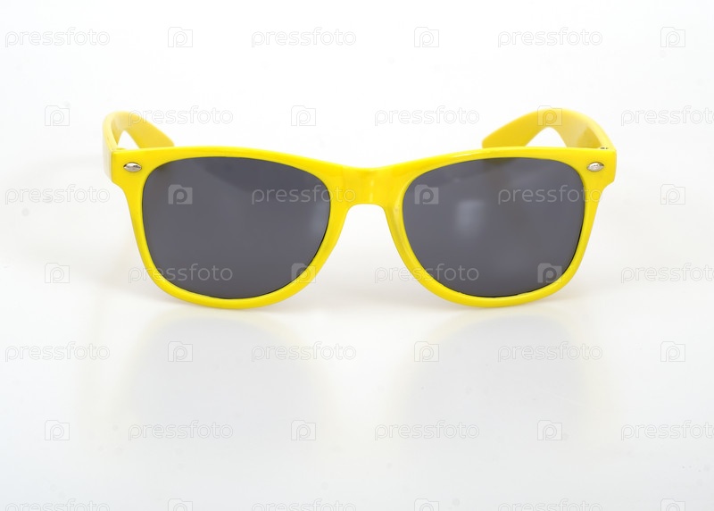 Желтые солнцезащитные очки выделены на белом фоне для нанесения на портрет, вырез готов