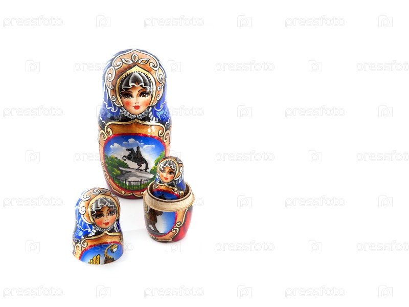 Российский национальный сувенир (Матриошка) выделен на белом фоне