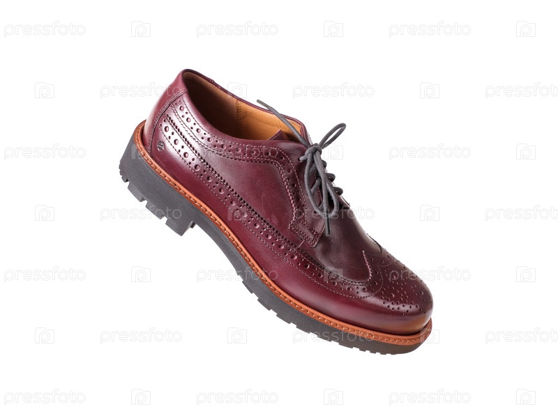 Темные вишневые кожаные оксфордские туфли с перфорированными деталями, изолированные на белом, вырез готов. Чрезвычайно высокое разрешение