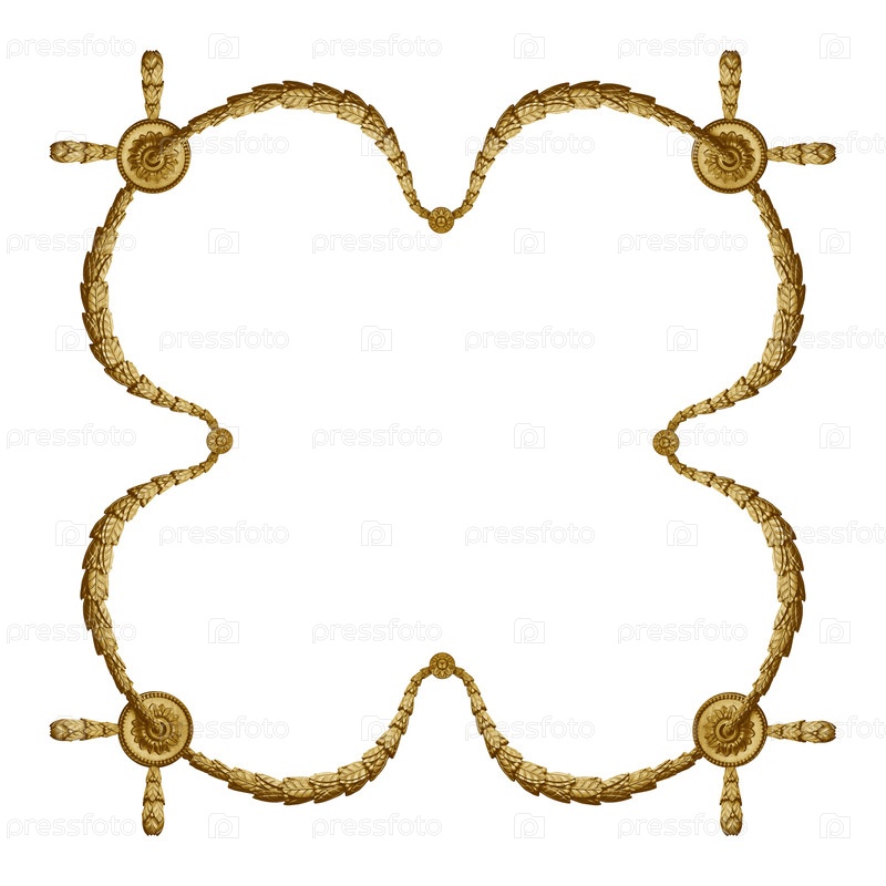 Золотые цветочные гирлянды изолированы на белом фоне. Элемент дизайна с обрезкой пути