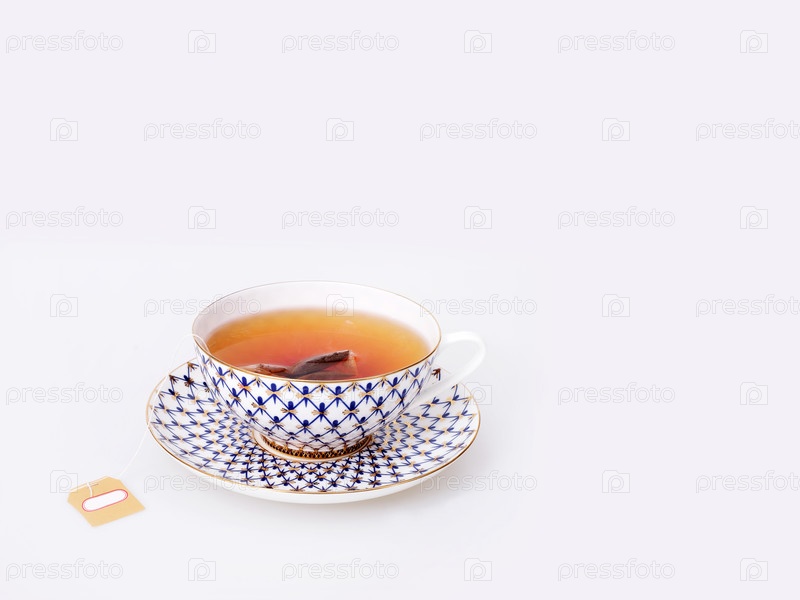 Фарфоровая чашка с чаем, изолированная на белом фоне