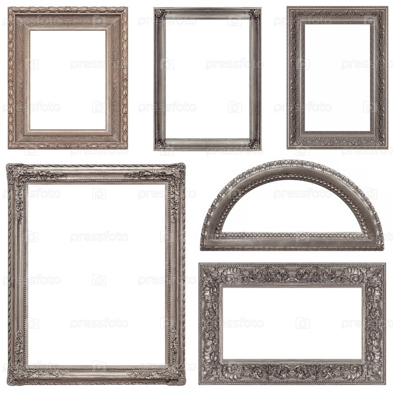 Набор серебряных рам для картин, зеркал или фотографий, изолированных на белом фоне