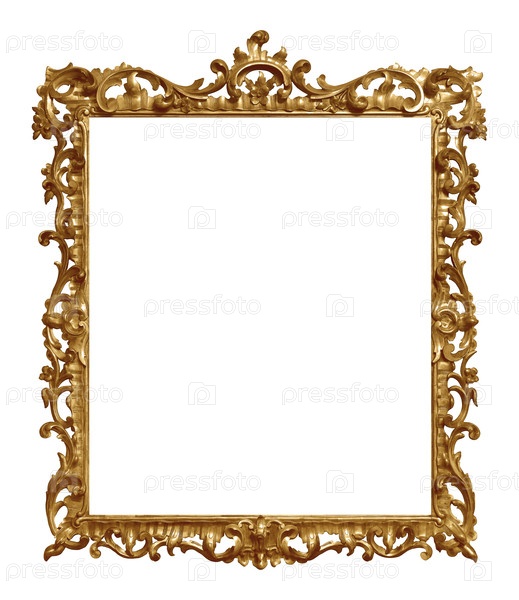 Золотая рама для картин, зеркал или фотографий, изолированных на белом фоне. Элемент дизайна с обрезкой пути