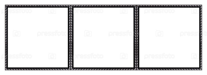 Тройная серебряная рама (триптих) для картин, зеркал или фотографий, изолированных на белом фоне
