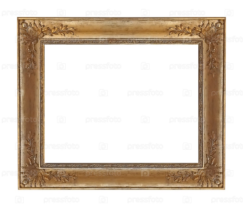 Золотая рама для картин, зеркал или фотографий, изолированных на белом фоне