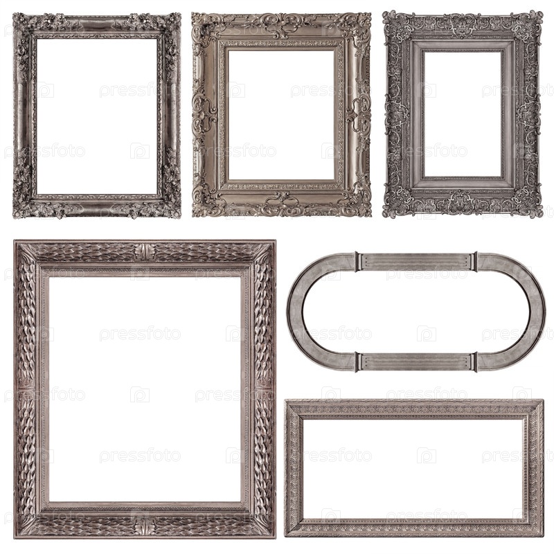 Набор серебряных рам для картин, зеркал или фотографий, изолированных на белом фоне