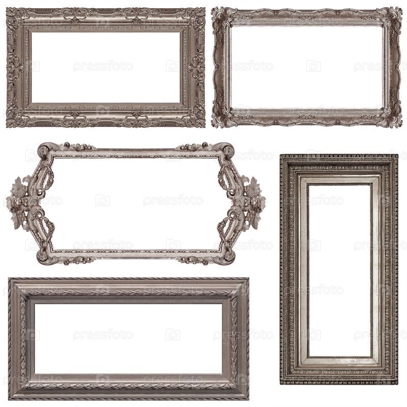 Набор серебряных рам для картин, зеркал или фотографий, изолированных на белом фоне
