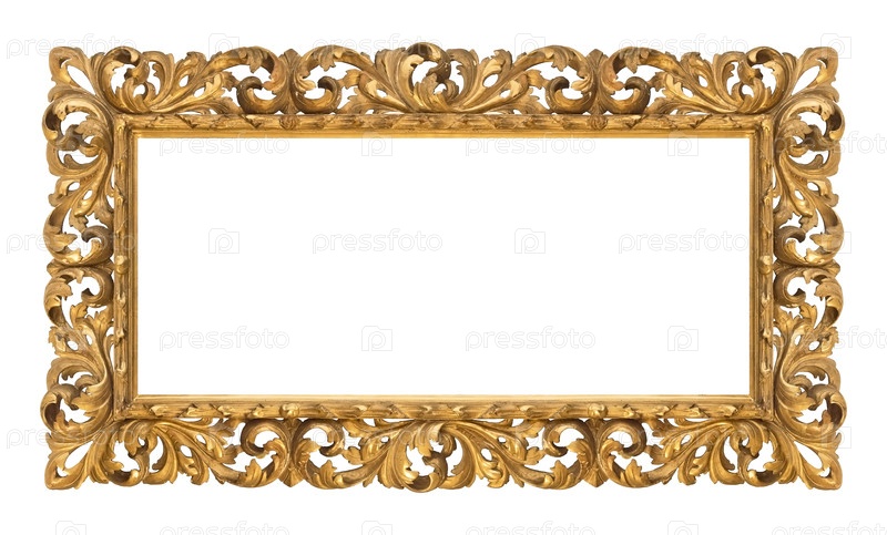 Панорамный золотой каркас для картин, зеркал или фотографий, изолированных на белом фоне