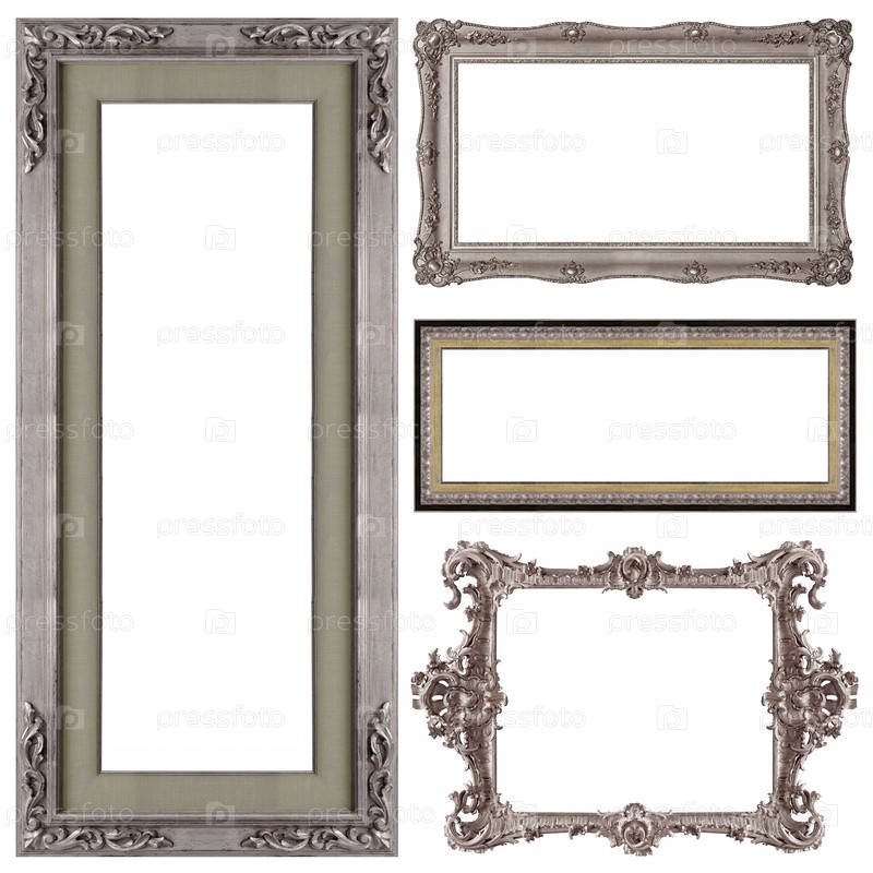 Набор серебряных рам для картин, зеркал или фотографий, изолированных на белом фоне