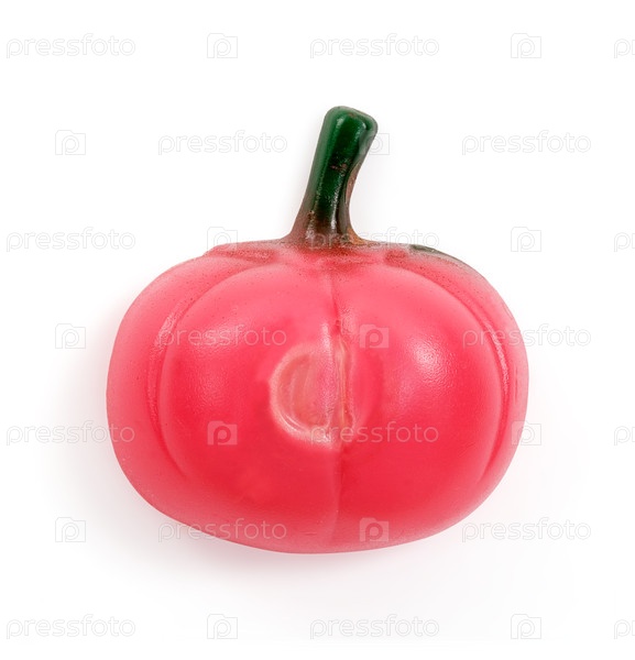Сувенирный магнит: красный помидор с зеленой веткой, изолированной на белом фоне. Элемент дизайна с обрезкой пути