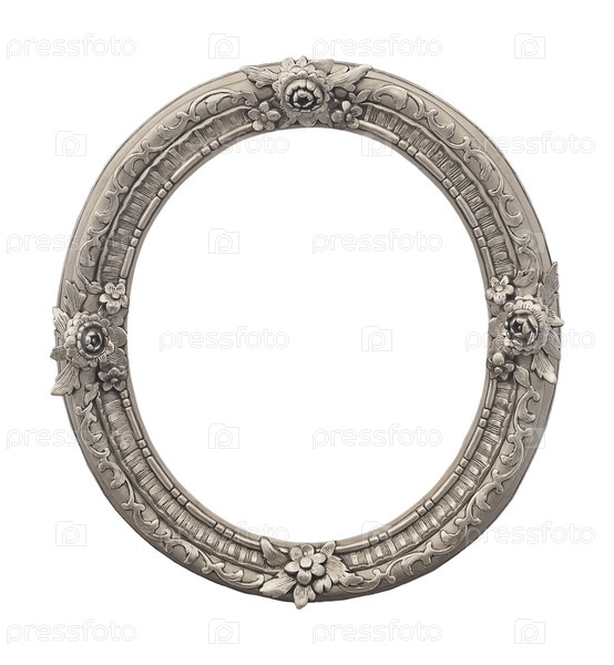 Серебряная овальная рама для картин, зеркал или фотографий, изолированных на белом фоне, вырез готов