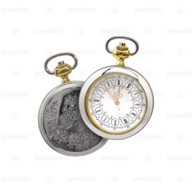 Карманные часы изолированы на белом фоне. Элемент дизайна с обрезкой пути