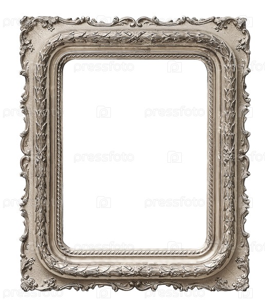 Серебряный каркас для картин, зеркал или фотографий, изолированных на белом фоне, вырез готов