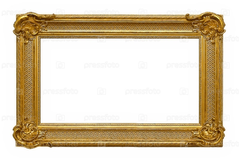 Панорамный золотой каркас для картин, зеркал или фотографий, изолированных на белом фоне, вырез готов