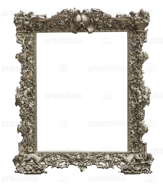 Серебряный каркас для картин, зеркал или фотографий, изолированных на белом фоне, вырез готов