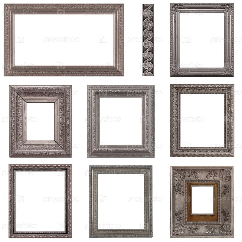 Набор серебряных рам для картин, зеркал или фотографий, изолированных на белом фоне