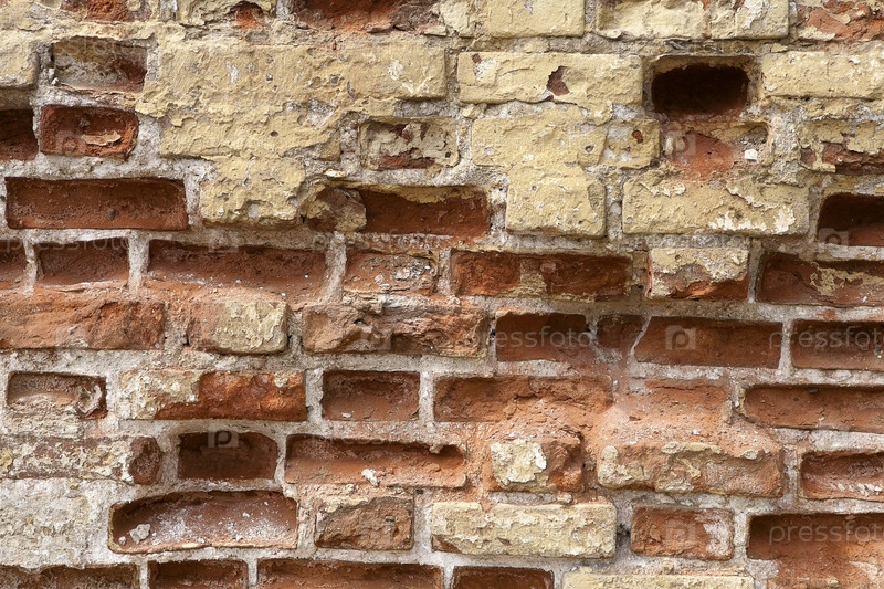 Антикварная ветхая изолированная кирпичная стена для создания дизайнерского фона