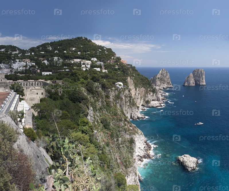 Захватывающий панорамный вид на береговую линию острова Капри с высокой точки зрения