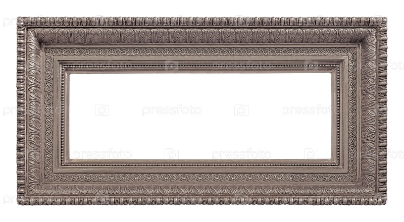 Панорамная серебряная рама для картин, зеркал или фотографий, изолированных на белом фоне. Элемент дизайна с обрезкой пути