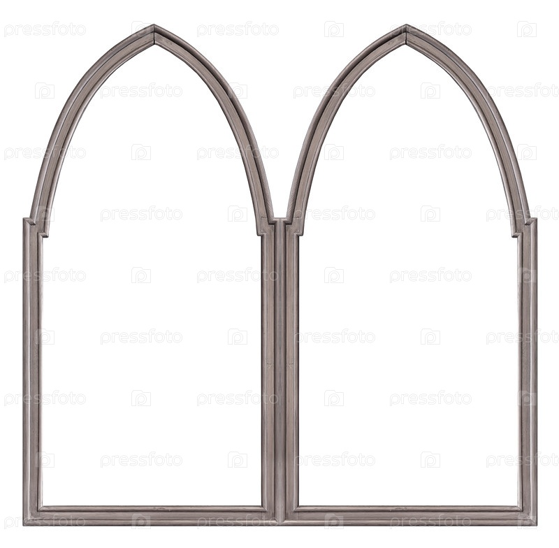 Двойная готическая серебряная рама (диптих) для картин, зеркал или фотографий, изолированных на белом фоне