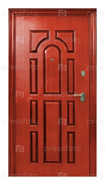Модель входной металлической двери изолирована на белом фоне