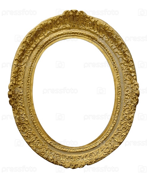 Овальный золотой каркас для картин, зеркал или фотографий, изолированных на белом фоне, вырез готов