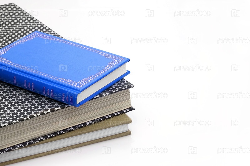 Стек книг в цветных обложках с белыми листами, изолированными на белом фоне