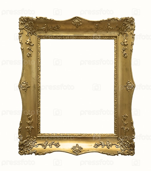Золотая рама для картин, зеркал или фотографий, изолированных на белом фоне, вырез готов