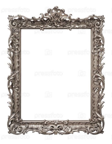 Серебряный каркас для картин, зеркал или фотографий, изолированных на белом фоне, вырез готов
