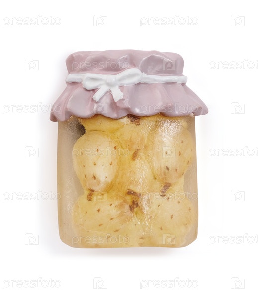 Сувенирный магнит: фруктовая баночка, изолированная на белом фоне. Элемент дизайна с обрезкой пути