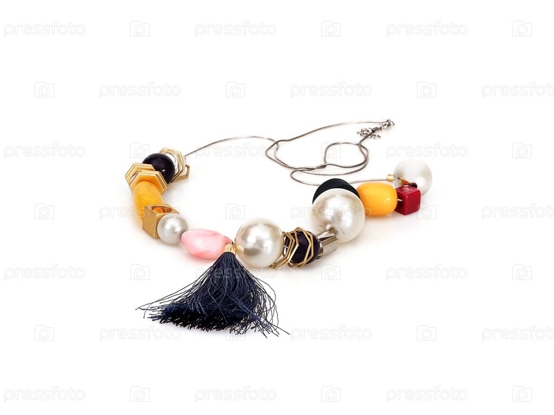 Ожерелье с драгоценными камнями и жемчугом изолировано на белом фоне