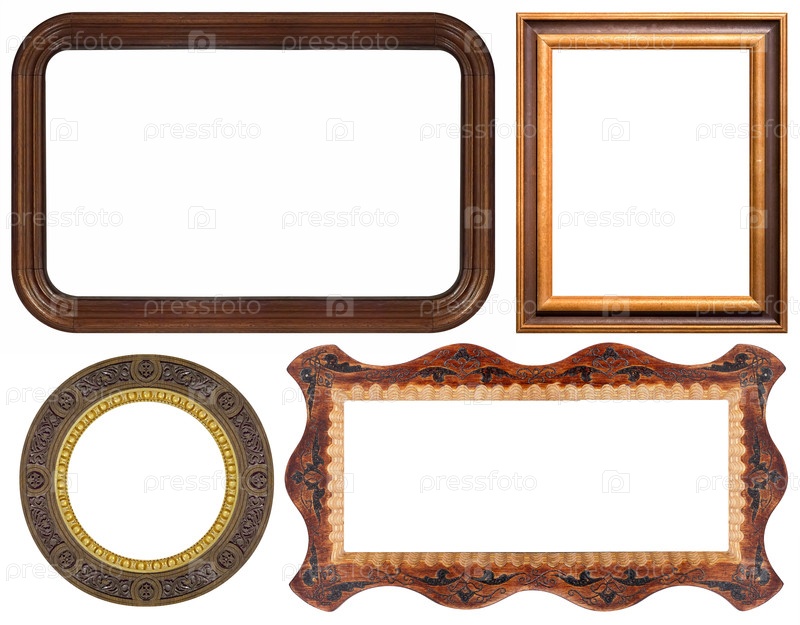 Набор деревянных рам для картин, зеркал или фотографий, изолированных на белом фоне